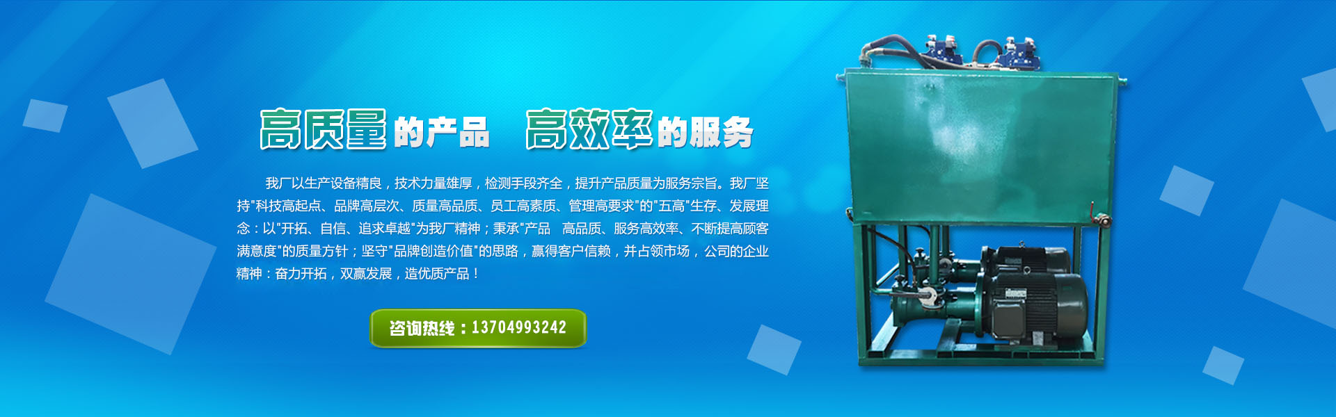 我廠堅(jiān)持科技高起點(diǎn)、品牌高層次、質(zhì)量高品質(zhì)、員工高素質(zhì)、管理高要求的"五高"生存、發(fā)展理念,以"開拓、自信、追求卓越"為我廠精神。